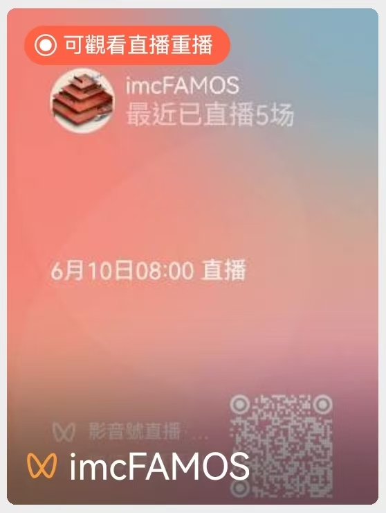 本周直播回顾: imcFAMOS微信视频号